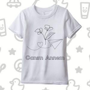 Yaratıcı Bir Dokunuş: Çiçekler ve Hayaller Veracraft boyanabilir tişört serisinin bu özel parçasında; masumiyeti simgeleyen çiçekler, sevgiyi taşıyan bir kalp ve hayalleri uçuran bir kağıt uçak figürü yer alıyor. Çocuklar, tekstil kalemleriyle bu çizgileri renklendirerek annelerine asla unutulmayacak, giyilebilir bir hatıra hazırlıyor.